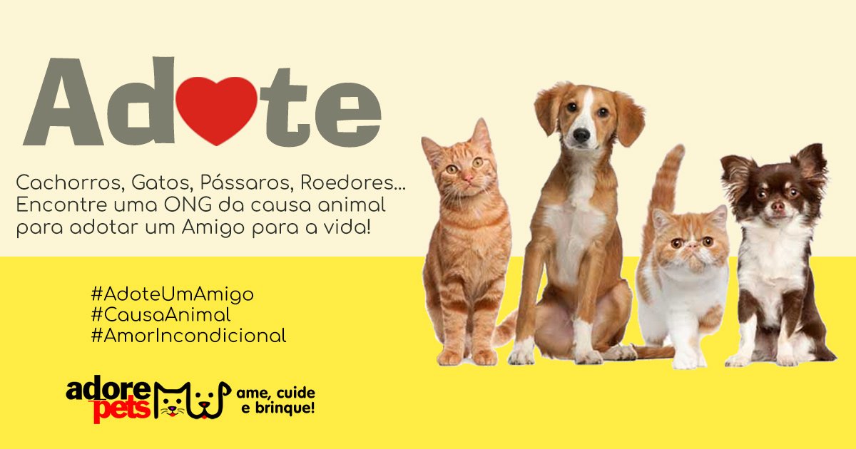 Se você está pensando em adicionar um novo membro à sua família, adote!, aliás, considere cuidar de um animalzinho de uma Organozação Não Governamental (ONG), filhote da Pet de um amigo(a) e até mesmo aquele carente, que lhe encontra na na rua pedindo ajuda. Essas organizações dedicam seu tempo, esforço e coração para resgatar e cuidar de animais abandonados e maltratados. Por isso, ao adotar, você está proporcionando uma segunda chance a um amigo peludo (ou penudo) que merece ser amado.